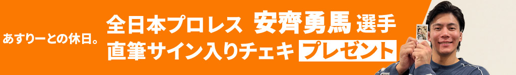 あすりーとの休日。 今回は長い伝統と王道プロレスで知られる全日本プロレスに所属する安齊勇馬選手のオフに密着! デビューから1年半の24歳10カ月で史上最年少三冠ヘビー級王者に輝いた安齊選手が、つかの間のオフに東京の街を満喫します。 |